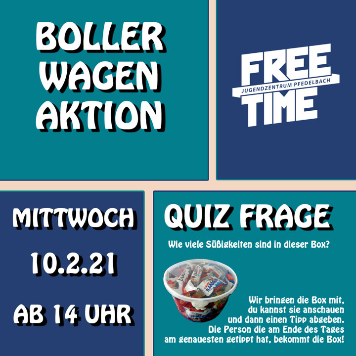 Diese Einzelfallhilfen sind gut und auch sehr wichtig. Dennoch sehen wir Mitarbeiter des Jugendzentrums aktuell viel weniger Jugendliche als üblich. Daher beschlossen wir, unsere Jugendlichen zuhause zu besuchen, wenn sie aktuell schon nicht gemeinsam zu uns kommen können. Das Ganze nannten wir die „Bollerwagen-Aktion“. Die Jugendlichen des Freetime wurden über WhatsApp, Instagram und Facebook darüber informiert, dass Martin Jakob und Nadine Fleischer am Mittwoch, den 10. Februar ab 14 Uhr mit dem Bollerwagen losziehen und alle zuhause an der Haustüre besuchen kommen, die Lust darauf haben. Gemeldet hatten sich 13 Jugendliche aus Pfedelbach und Windischenbach. Bei Schnee und Eiseskälte zog das Freetime-Team mit dem Bollerwagen los. Im Gepäck waren kleine Tüten mit Süßigkeiten für jede/n. Es handelte sich dabei um die Süßigkeiten des Freetime, die dort normalerweise verkauft werden. Bevor jedoch das Mindesthaltbarkeitsdatum abläuft, wurden die Süßigkeiten einfach verschenkt. Außerdem konnten alle Jugendlichen noch an einem Ratequizz teilnehmen. Dabei mussten sie schätzen, wie viele Süßigkeiten sich in einer Box befinden, welche wir dabeihatten. Die Person, welche am Ende den besten Tipp abgab, gewann die Box. Am Ende musste sogar das Los über einen Sieger entscheiden. Denn Ronja und Aaron hatten beide einen Tipp abgegeben, der nur um 3 daneben lag. Das Los entschied für Aaron, der sich nun über 138 Süßigkeiten freuen kann. Zum Glück hat er einige Geschwister. Er versprach, ihnen etwas davon abzugeben.