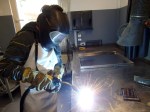 Am Freitagmittag um 15 Uhr wird die erste Bauphase dann mit einer kurzen Reflektionsrunde abgeschlossen. Alle sind sich einig, dass die vier Tage sehr viel Spaß gemacht haben und wir alle viel Neues gelernt haben. Zu diesen neuen Fähigkeiten gehören das selbständige Arbeiten können mit einigen großen Maschinen der Lehrwerkstatt. Außerdem können die Jugendlichen nun schon selber schweißen. Noch nicht perfekt, das ist klar, aber immerhin konnten sie es zum ersten Mal in ihrem Leben ausprobieren. Das war Spaß und Herausforderung zugleich. Nach vielen Probeschweißnähten schweißten zwei Jungs am dritten Tag sogar selbständig einige Teile am Rahmen fest. Auch wenn nun erst der Anfang gemacht ist und noch viel Arbeit vor uns liegt, so ist der Grundstein nun gelegt. In den nächsten Monaten wird es dann in weiteren Bauphasen weitergehen.